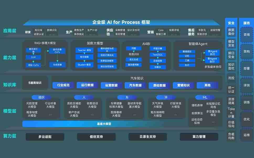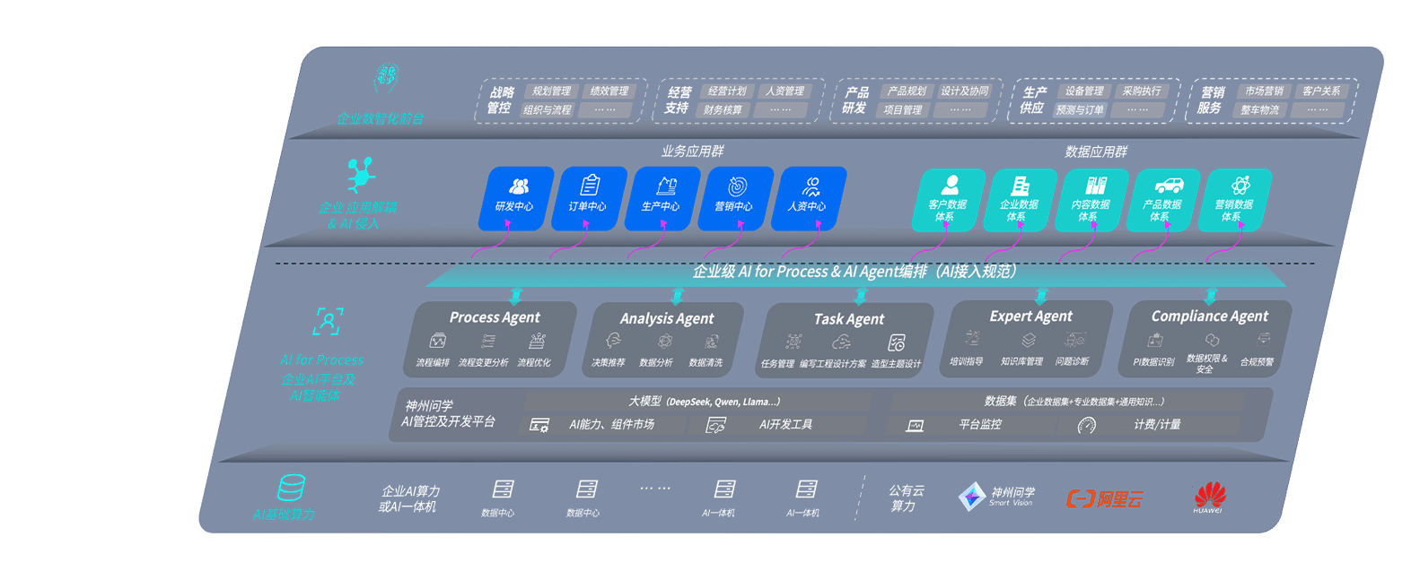 端到端的一站式AI工作空间深度融合了从企业战略规划到日常经营的全流程业务板块,,定向解决车企内部领域多、、、、部门多、、链条长、、、场景碎片化等难题,,支持车企快速构建以AI为核心的生产力写作体系,,,实现任务执行与AI能力的无缝集成与交互